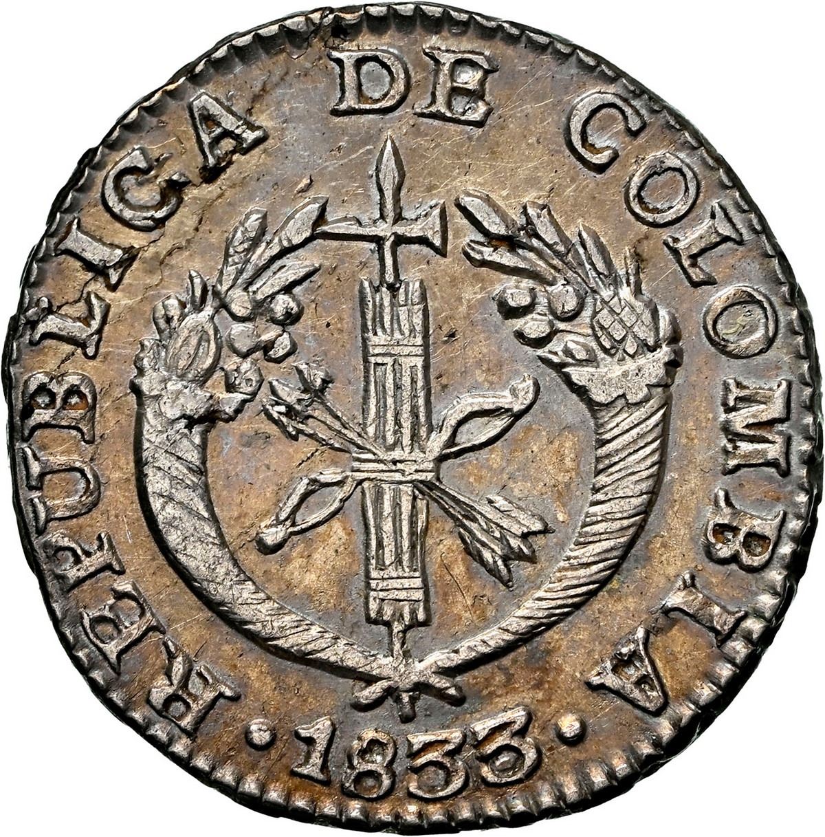 COLOMBIA, Bogotá, ½ real, 1833 RS, NGC AU details / cleaned, ex-Dana Roberts.