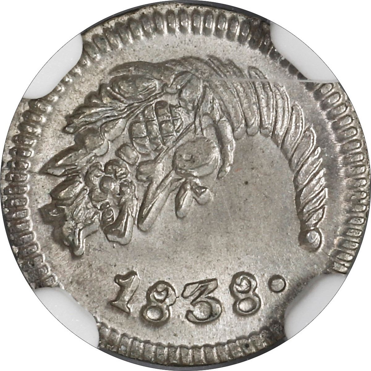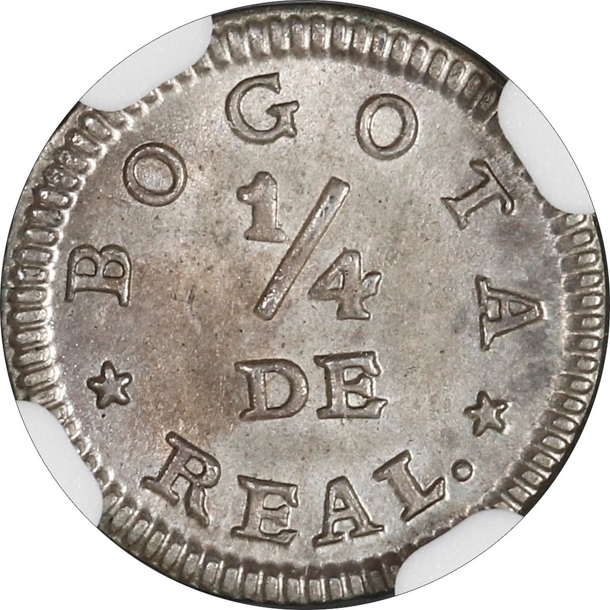 COLOMBIA, Bogotá, ¼ real, 1838, NGC MS 66 (EMO Collection Label).