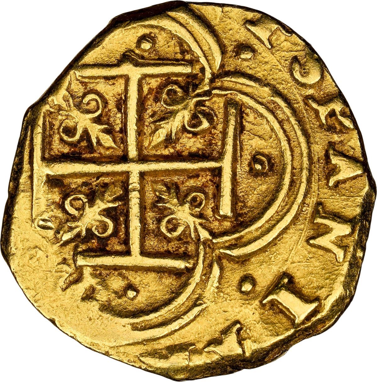 COLOMBIA, Cartagena, gold cob 2 escudos, Philip IV, assayer E below mintmark C to right, dots inside and outside tressure around cross, NGC AU 53. ERA-C14; Restrepo-M52.12 var; S-C7; Cal-Type 378; KM-4.6; Fr-2a1. 6.80 grams. Lemon-yellow gold with contrasting sediment in crevices, choice full shield and cross (both very well detailed but slightly off-center), the former with full and bold +C+E+ to right (later issue, tentatively attributable to 1634).