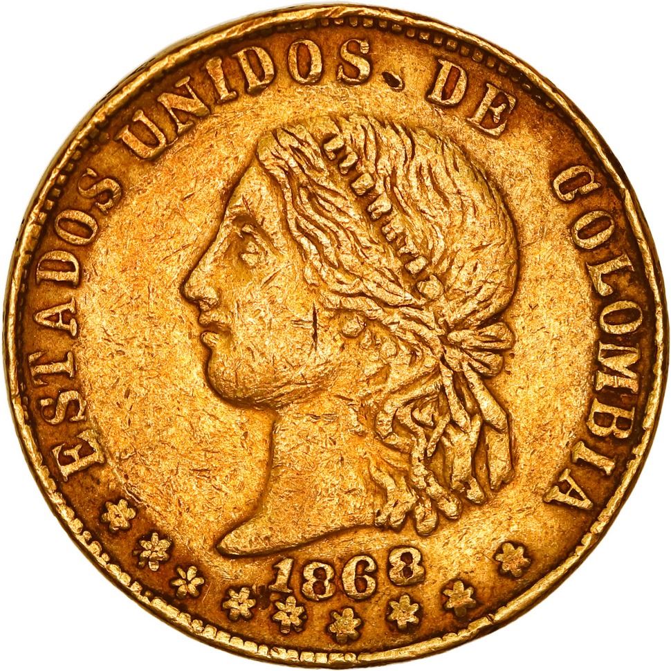 COLOMBIA, Medellín, gold 10 pesos, 1868, ex-JEAS.