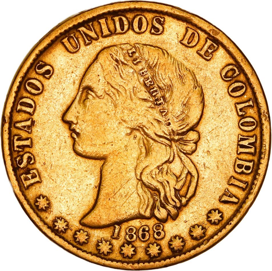 COLOMBIA, Medellín, gold 10 pesos, 1868, no stars on reverse, ex-JEAS.