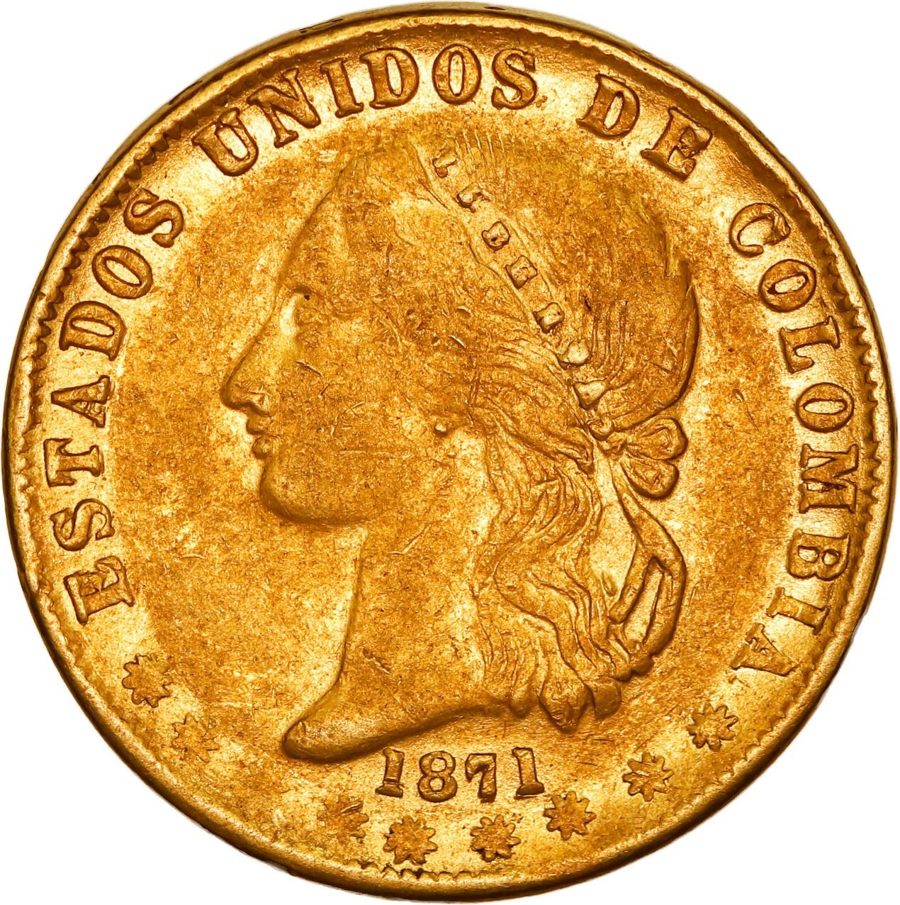 COLOMBIA, Medellín, gold 10 pesos, 1871, effigy of Medio Peso type, ex-JEAS.