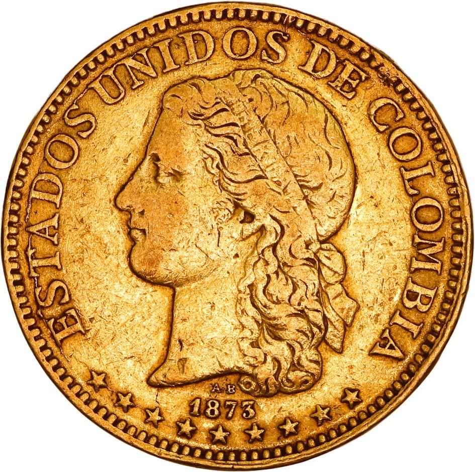 COLOMBIA, Medellín, gold 10 pesos, 1873, Barré bust, ex-JEAS.