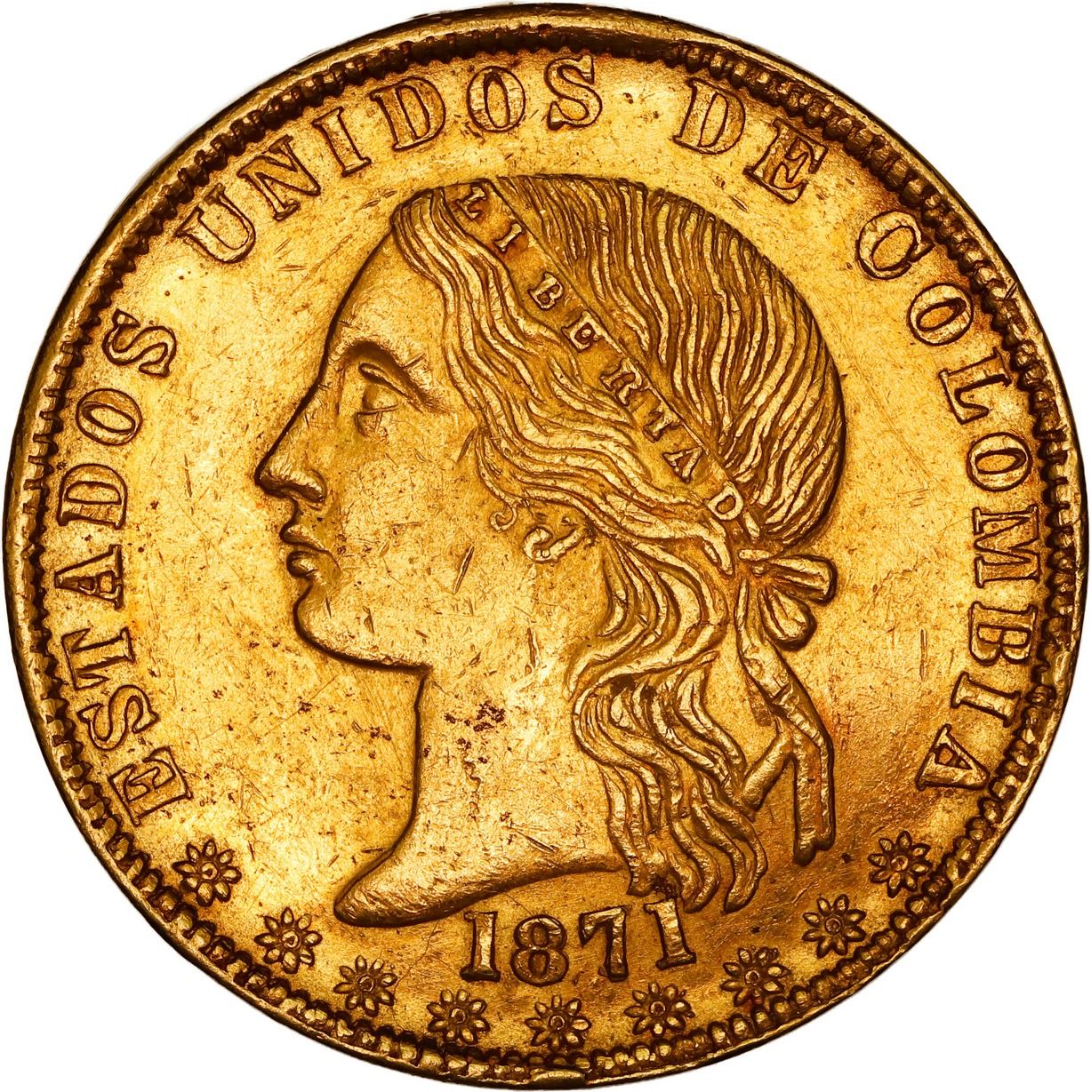 COLOMBIA, Medellín, gold 20 pesos, 1871, ex-JEAS.