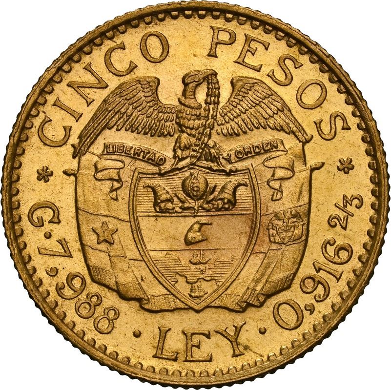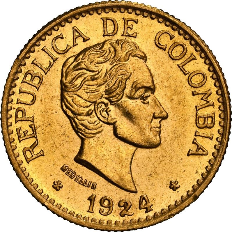 COLOMBIA, Medellín, gold 5 pesos, 1924, normal date, NGC MS 62, ex-JEAS.