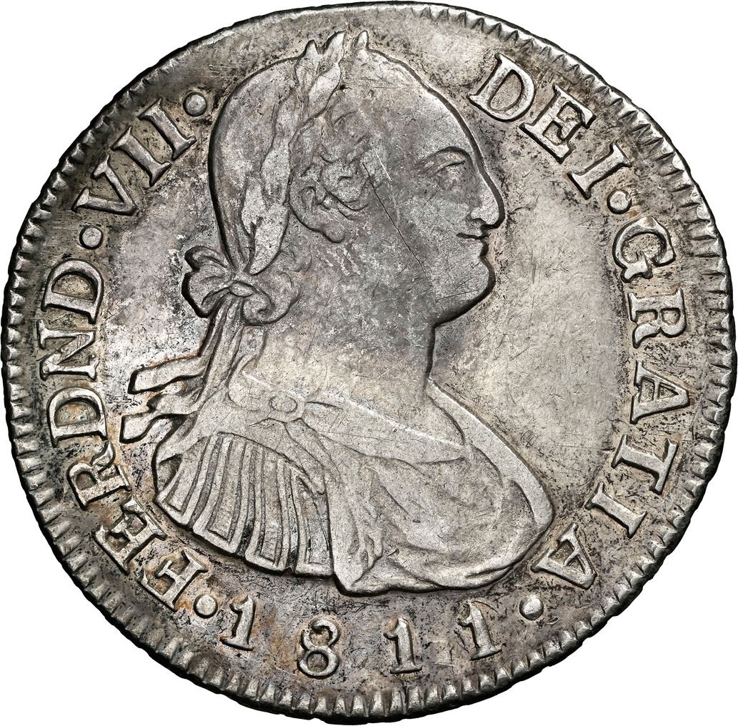 COLOMBIA, Popayán, bust 2 reales, Ferdinand VII, 1811/0 J•F, NGC XF 45, ex-Becerra. Restrepo-114.2; Cal-896; KM-70.2. Good strike with nearly full rims, lightly toned all over but with dark area in upper-left quadrant of obverse, second finest in the NGC census behind a single AU 55. Pedigreed to the Becerra Collection (stated on label).