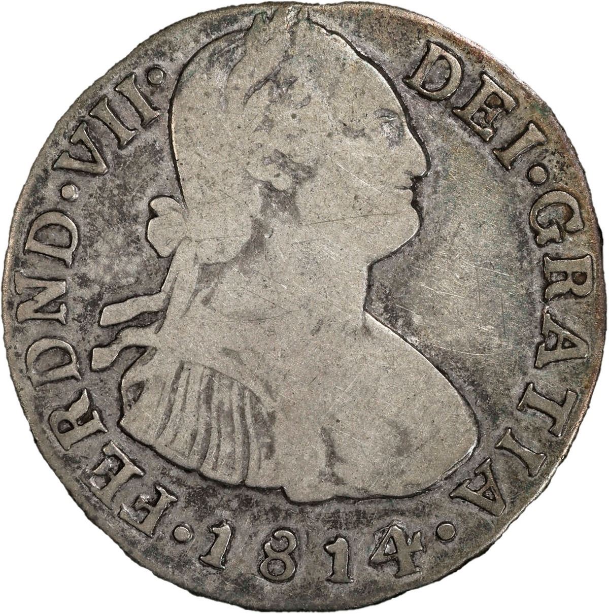 COLOMBIA, Popayán, bust 2 reales, Ferdinand VII (bust of Charles IV), 1814/3 JF, PCGS F15, finest and only example in PCGS census. Restrepo-114.6; Cal-900; KM-70.2. Small-diameter flan with no rims as a result, light gray rainbow toning over muted luster, just one example graded higher in VF 25 at NGC.