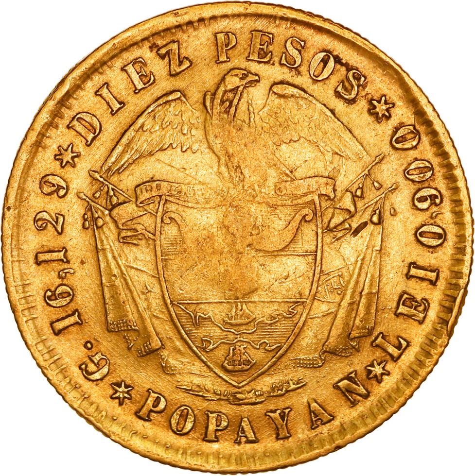 COLOMBIA, Popayán, gold 10 pesos, 1858, ex-JEAS. Restrepo-235.1; Sed-26; KM-129.1; Fr-89. 16.00 grams. Lusterless AU- with relatively smooth fields, some light toning, minor rim-flaws on reverse. Pedigreed to the JEAS Collection.