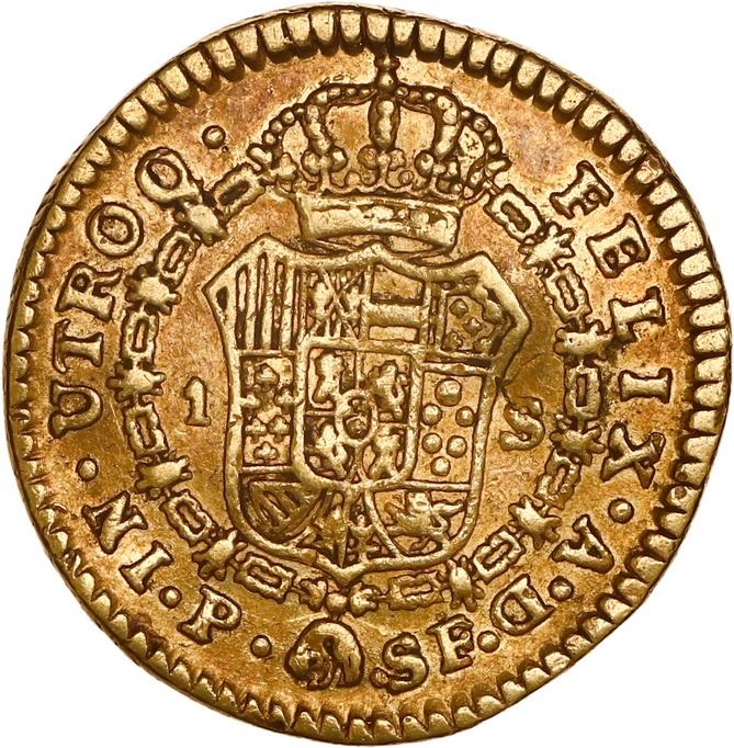 COLOMBIA, Popayán, gold bust 1 escudo, Charles III, 1786 SF, ex-JEAS.