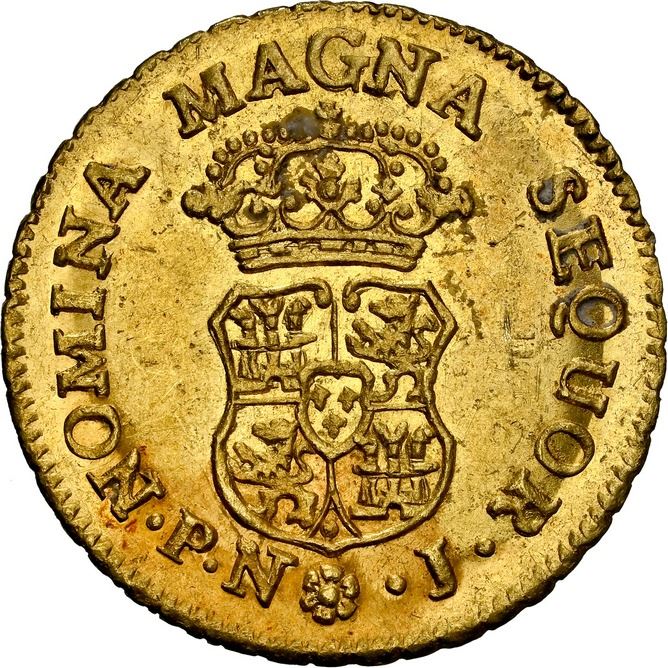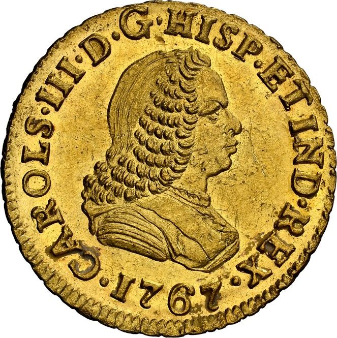 COLOMBIA, Popayán, gold bust 1 escudo, Charles III (bust of Ferdinand VI), 1767 J, NGC UNC details /