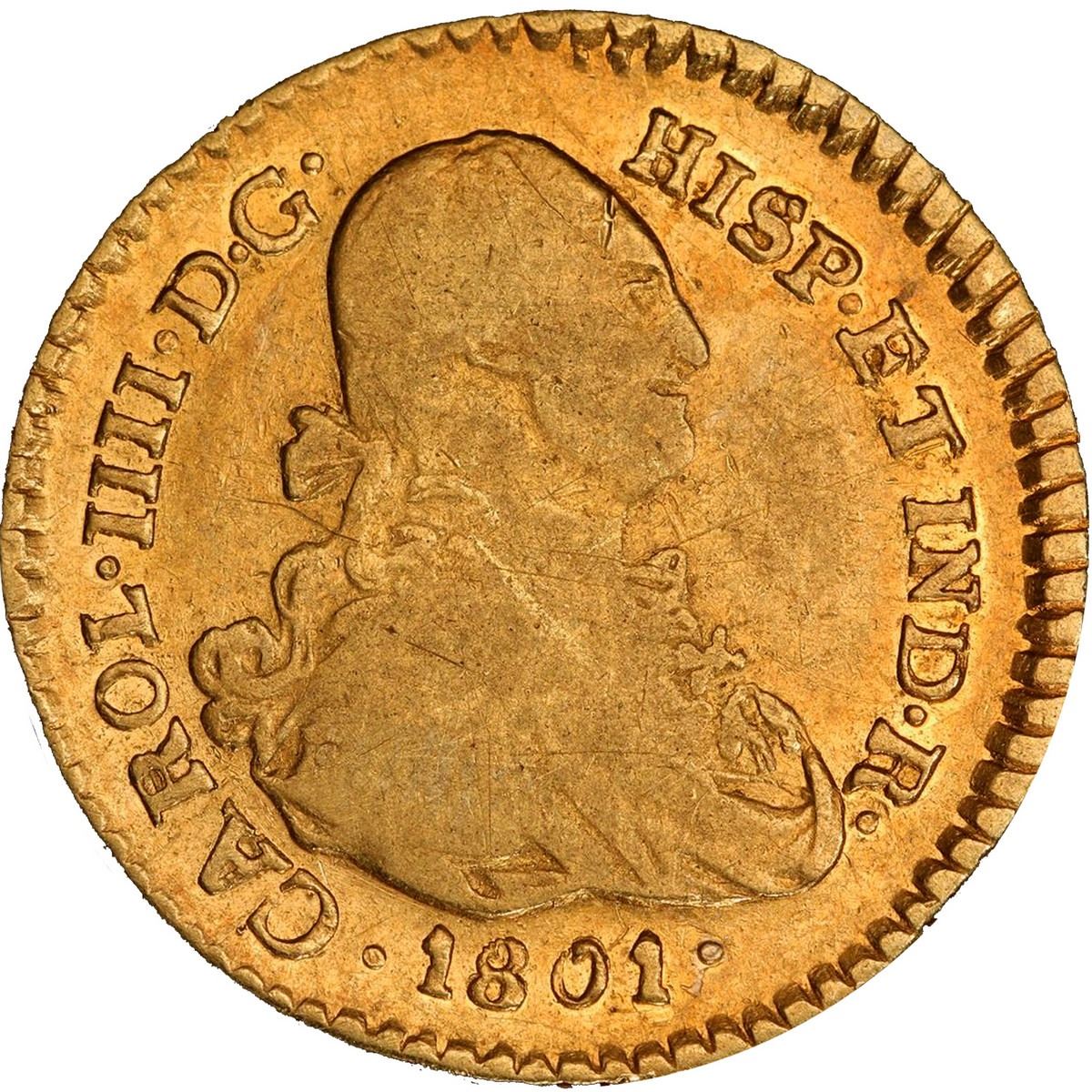 COLOMBIA, Popayán, gold bust 1 escudo, Charles IV, 1801 JF, PCGS VF30.