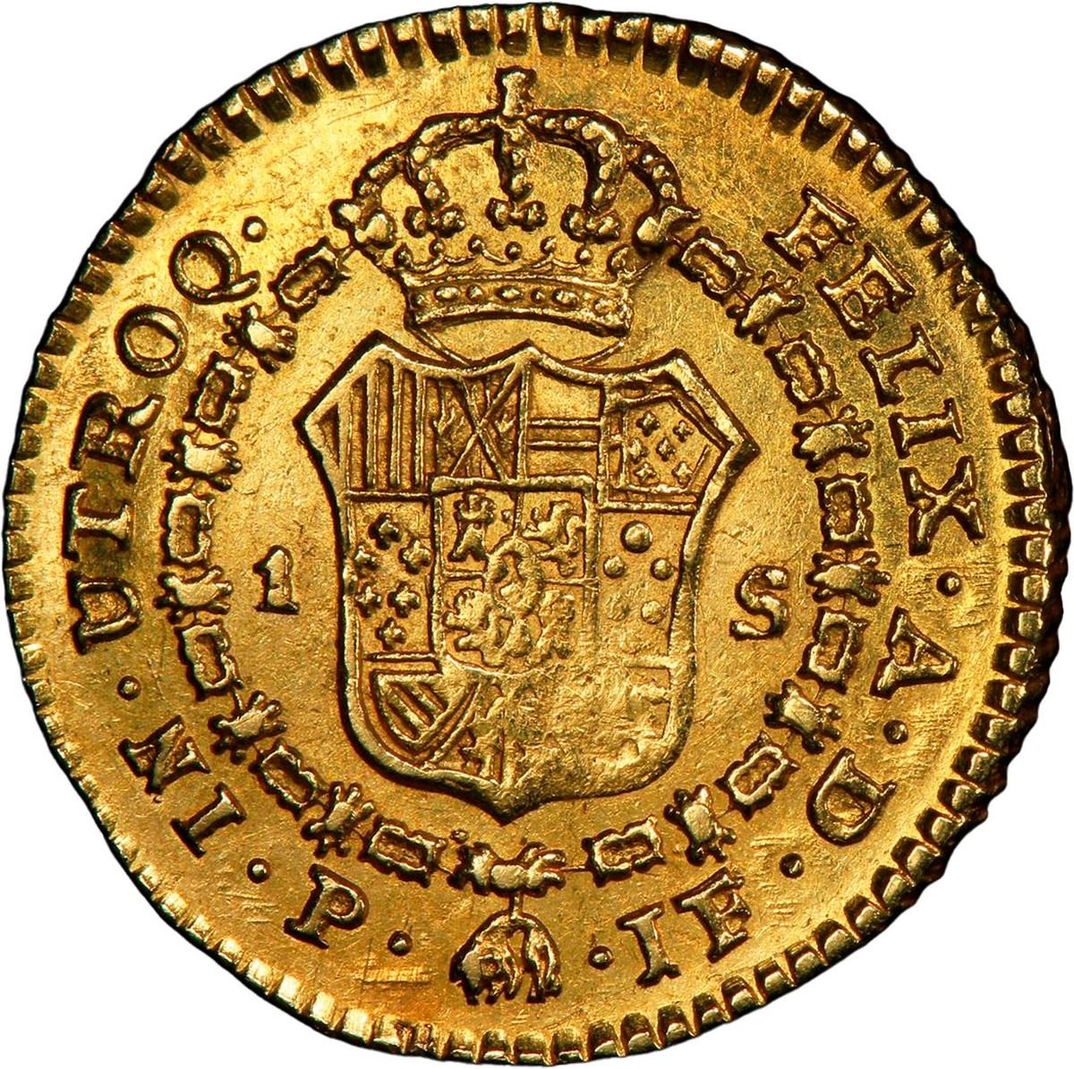 COLOMBIA, Popayán, gold bust 1 escudo, Ferdinand VII (bust of Charles IV), 1814 JF, PCGS AU50.