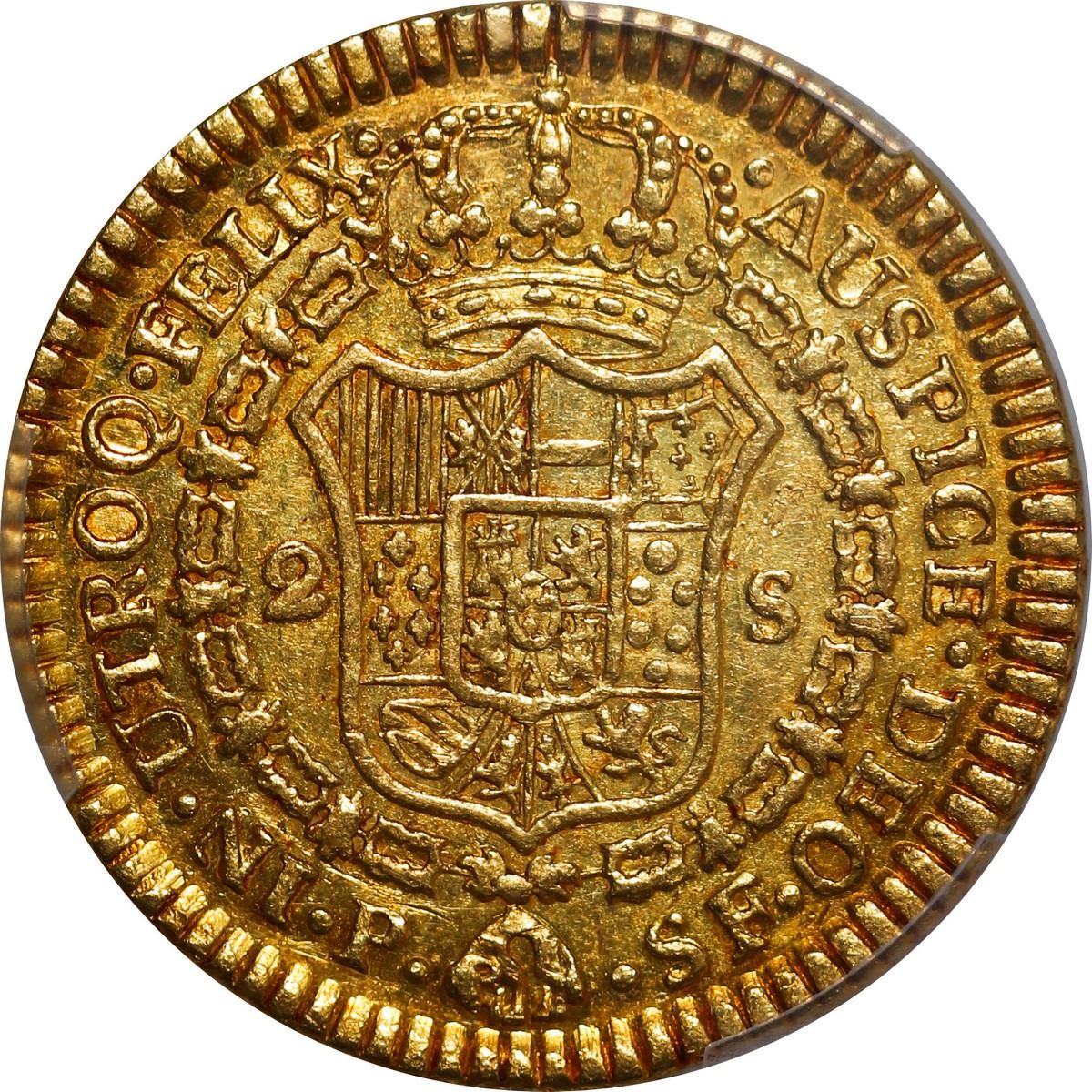 COLOMBIA, Popayán, gold bust 2 escudos, Charles III, 1784 SF, PCGS AU53. Restrepo-62.26; Cal-1647; KM-49.2; Fr-40. Very similar to the previous lot, in fact with better rims (100% complete) and no adjustment marks, just a little bit more wear and small marks.
