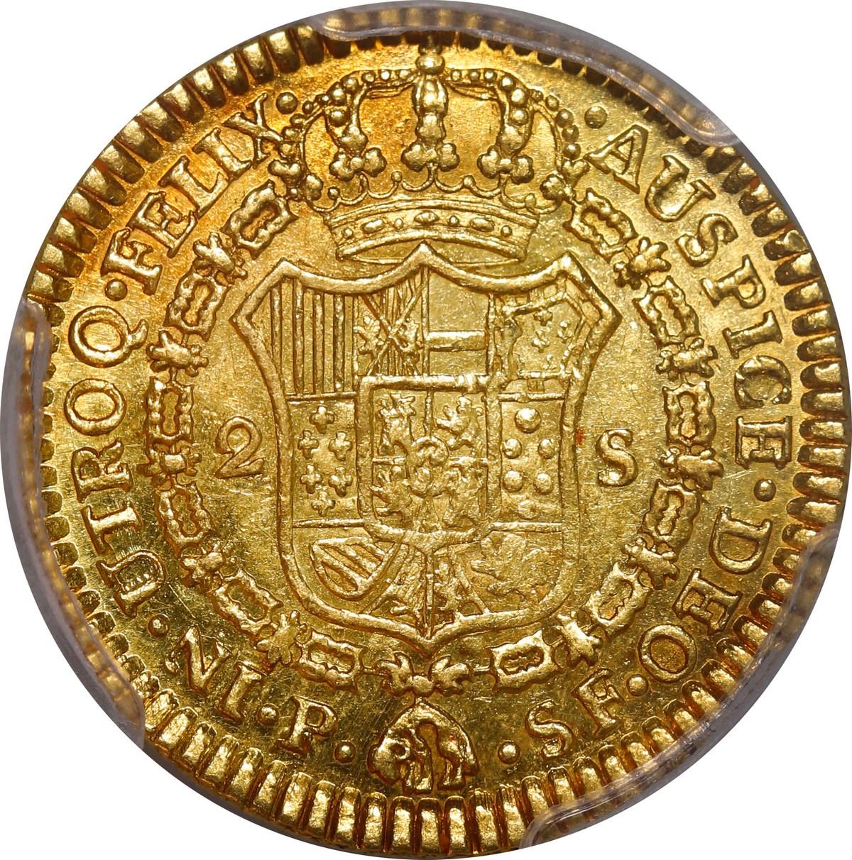 COLOMBIA, Popayán, gold bust 2 escudos, Charles III, 1784 SF, PCGS AU55, finest known in PCGS census