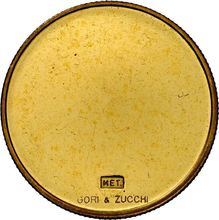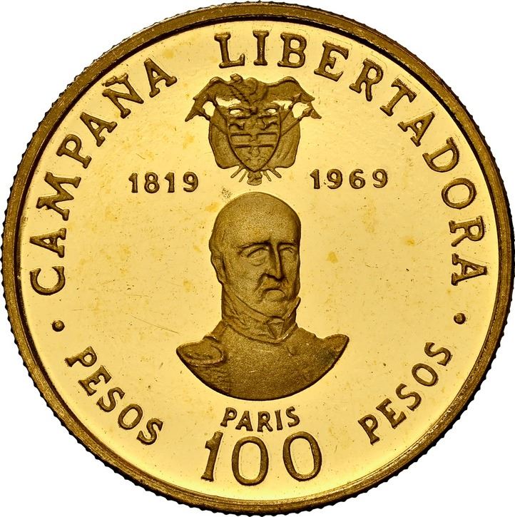 COLOMBIA, gilt brass proof uniface obverse of 100 pesos, 1969, Battle of Boyacá - Paris, NGC PF 65 Ultra Cameo, ex-JEAS. Restrepo-p. 264; for type: Sed-62; KM-238; Fr-126. Devoid of any marks but the mirror finish less smooth than others, stamped MET. inside box above GORI & ZUCCHI at rim on reverse. Pedigreed to the JEAS Collection (stated on label).