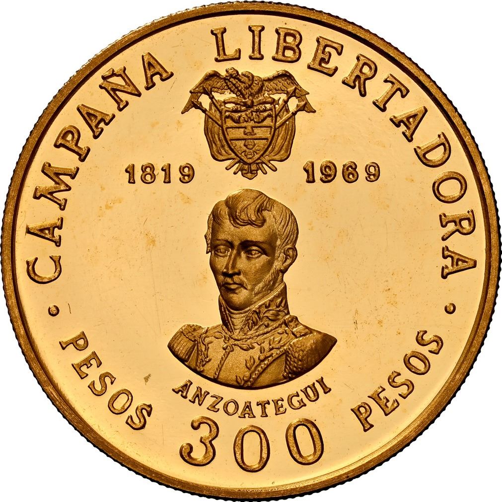 COLOMBIA, gilt brass proof uniface obverse of 300 pesos, 1969, Battle of Boyacá - Anzoátegui, NGC PF