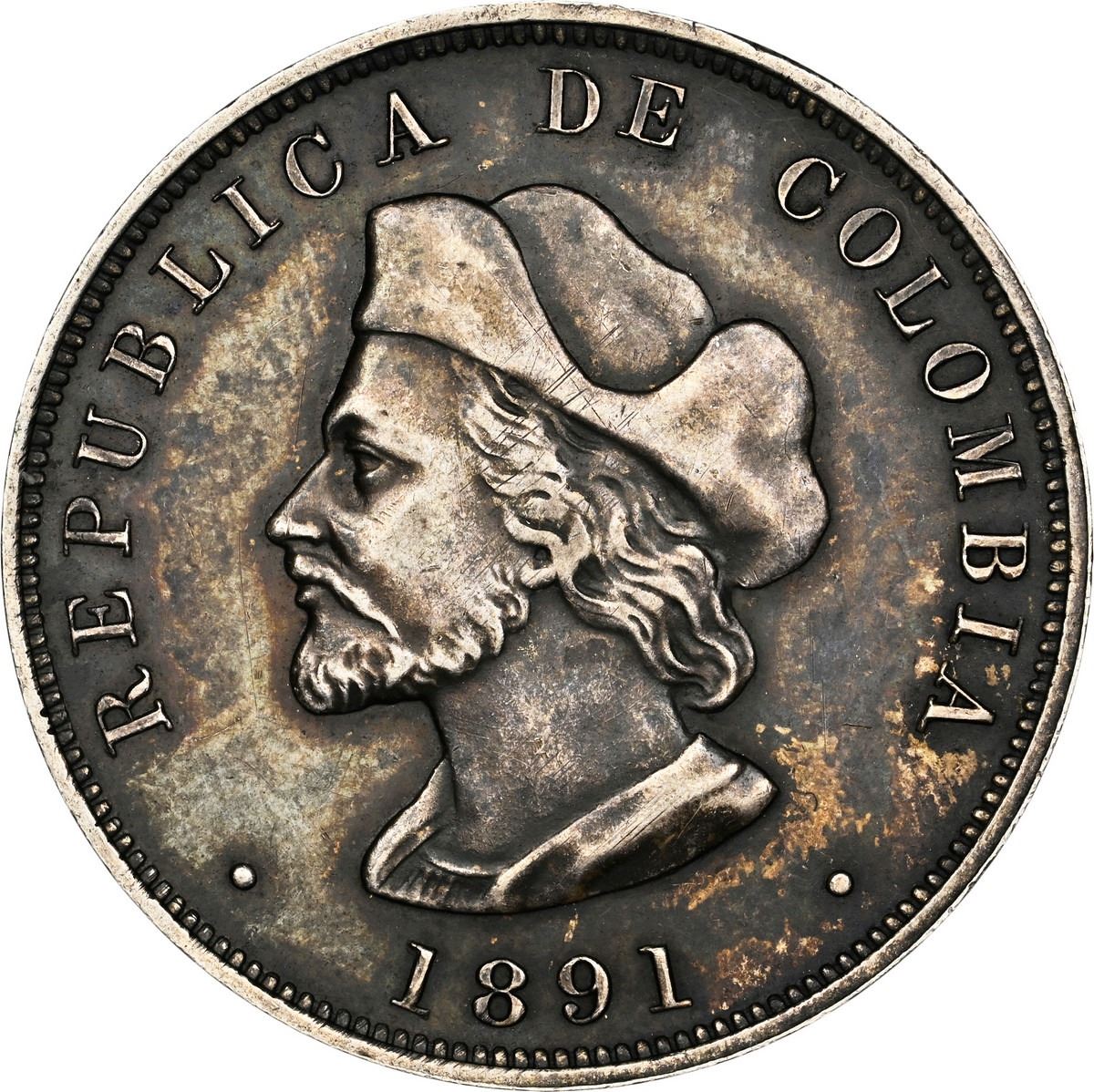 COLOMBIA, specimen pattern 50 centavos, 1891, Colombus, lettered edge, unique(?), NGC AU 53, finest