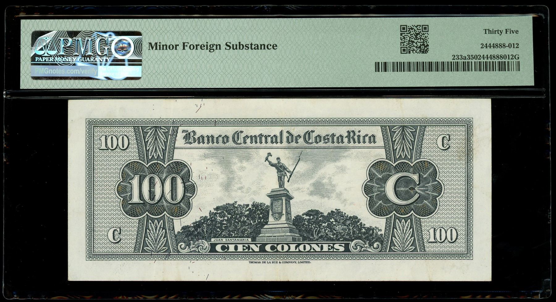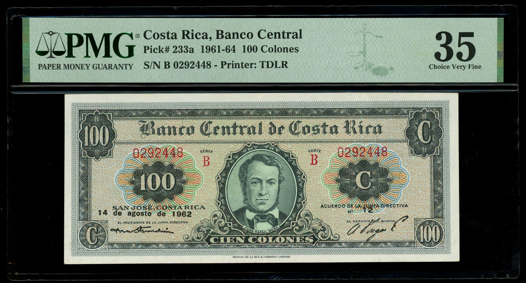 COSTA RICA, San José, Banco Central, 100 colones, 14-8-1962, series B, serial 0292448, PMG Choice VF
