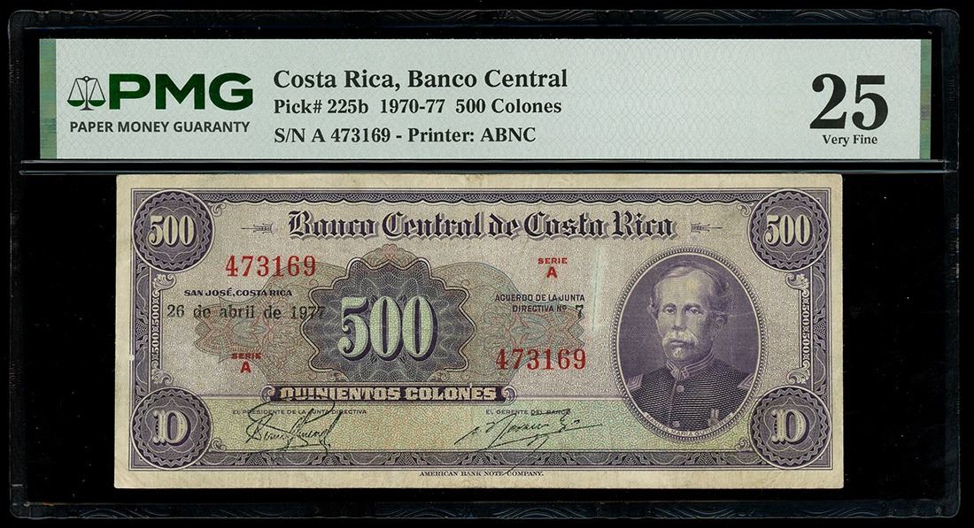 COSTA RICA, San José, Banco Central, 500 colones, 26-4-1977, series A, serial 473169, PMG VF 25.