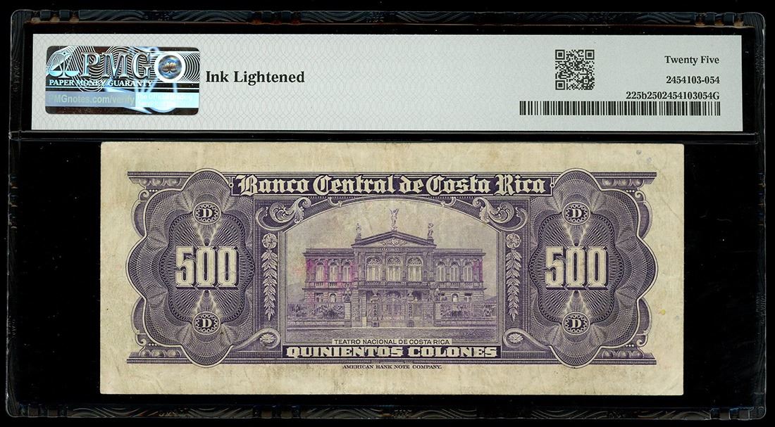 COSTA RICA, San José, Banco Central, 500 colones, 26-4-1977, series A, serial 473169, PMG VF 25. Pick-225b. Final date of issuance for this series. Bold design, ink mark lightened on the face.