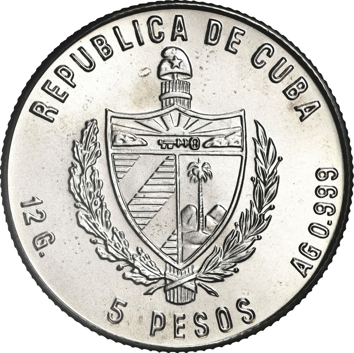 CUBA, Havana mint, copper-gold-silver 5 pesos pattern, 1987, 100 anniversary of the abolition of slavery (1886-1986), extremely rare, NGC MS 69 (70% CU - 20% AU - 10% AG). KM-PnG11. 12 grams. 30 mm. Dramatic design of a muscle-bound slave breaking chains (per KM-326) from a pre-series pattern mintage of only four pieces with slight differences in metallic composition containing gold and silver in addition to copper, the present example with light golden hue in places on the lustrous satin surfaces, practically flawless.