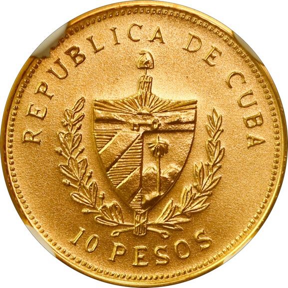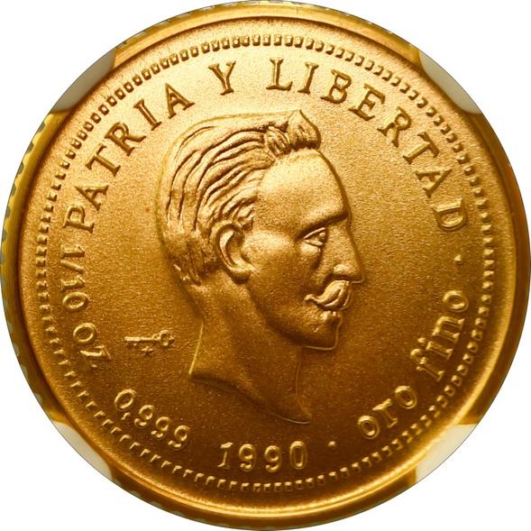 CUBA, Havana mint, gold 10 pesos, 1990, José Martí, NGC MS 69 (EMO Collection Label).