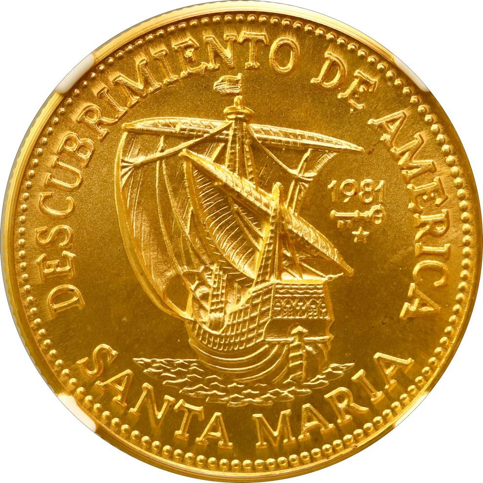 CUBA, Havana mint, gold 100 pesos, 1981, Columbus' ship Santa María, NGC MS 68 (EMO Collection Label