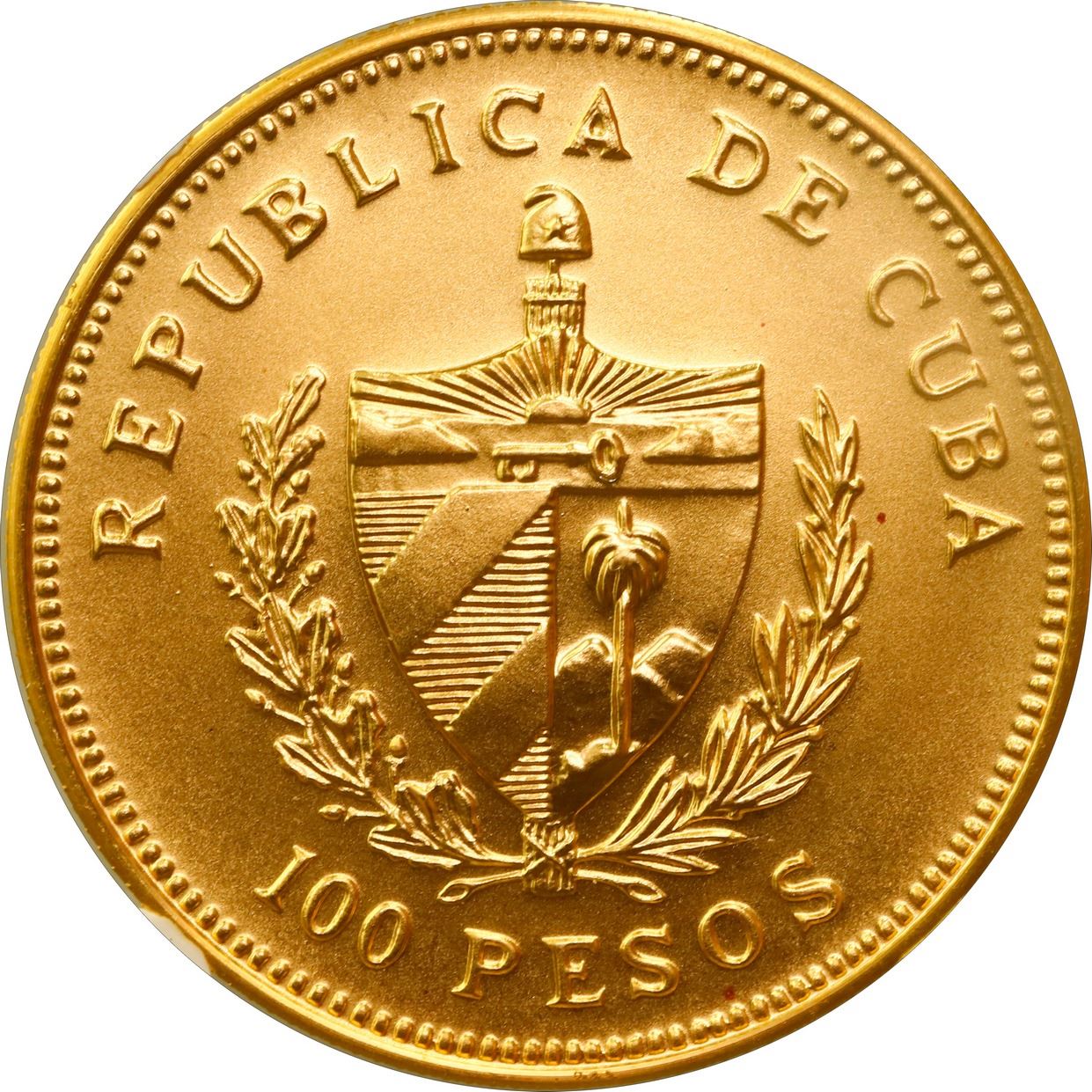 CUBA, Havana mint, gold piefort 100 pesos, 1990, José Martí, NGC MS 69 (EMO Collection Label).