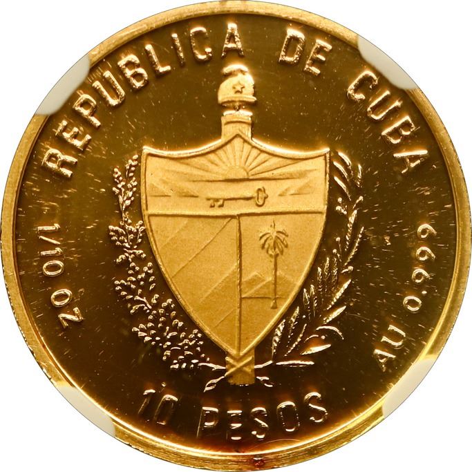 CUBA, Havana mint, gold proof 10 pesos, 1990, Barcelona Olympics Basketball, NGC PF 69 Ultra Cameo (EMO Collection Label), "top pop." KM-342; Fr-56. Bright mirror cameo, flawless except for one tiny red spot near center, currently tied with five others for finest in the NGC census, from an estimated mintage of 5000 pieces. Pedigreed to The Emilio M. Ortiz Collection of Cuban Gold Coins.