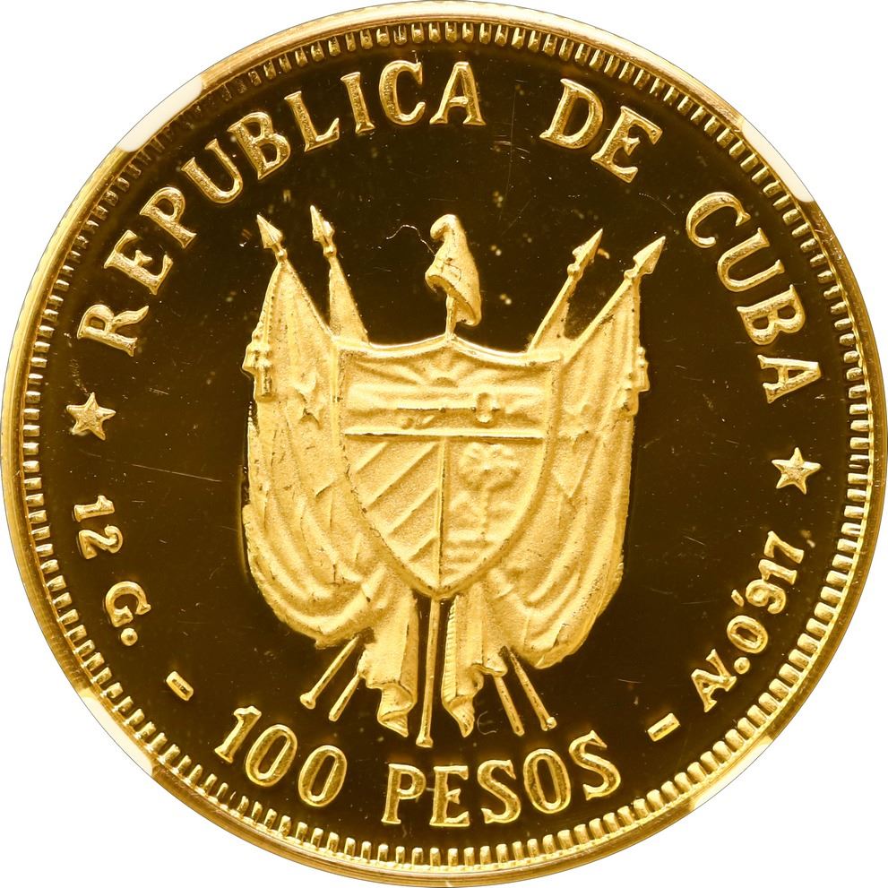 CUBA, Havana mint, gold proof 100 pesos, 1977, Carlos Manuel de Céspedes, NGC PF 67 Ultra Cameo (EMO