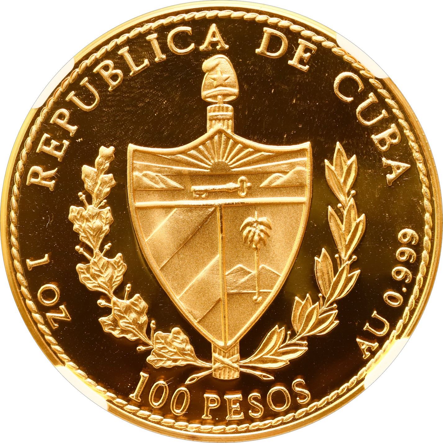CUBA, Havana mint, gold proof 100 pesos, 1991, Diego Velazquez New World 500th Anniversary, NGC PF 69 Ultra Cameo. KM-452; Fr-63. Spectacular mirror cameo with no visible flaws, tied with one other for second finest in NGC census behind a single PF 70, from a reported mintage of 200 pieces.