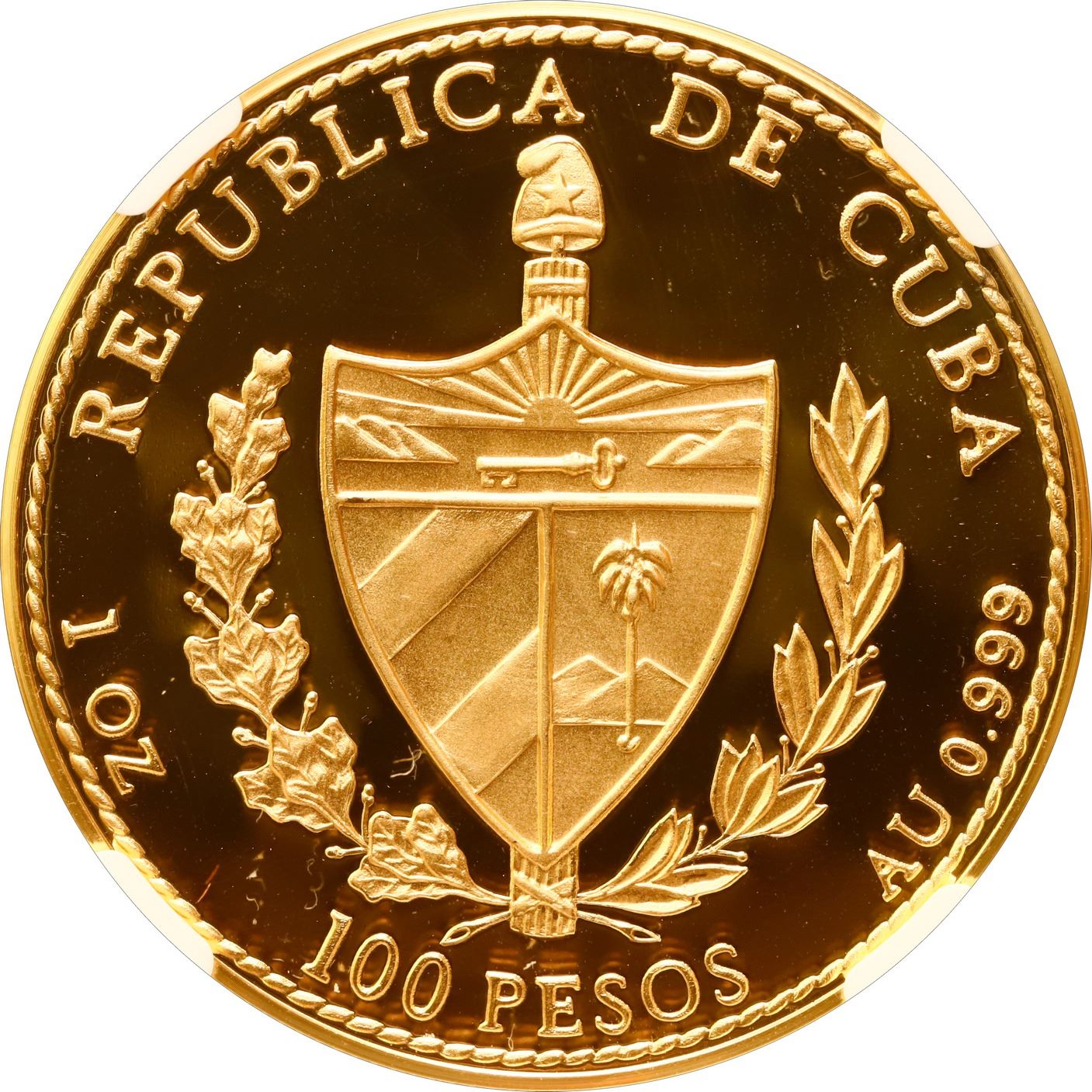 CUBA, Havana mint, gold proof 100 pesos, 1991, Queen Joanna, NGC PF 69 Ultra Cameo.