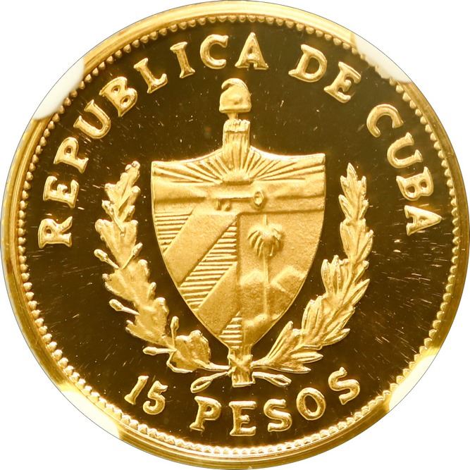 CUBA, Havana mint, gold proof 15 pesos, 1989, José Martí, NGC PF 68 Ultra Cameo (EMO Collection Labe
