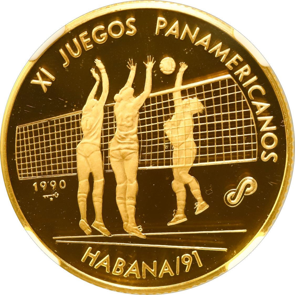 CUBA, Havana mint, gold proof 50 pesos, 1990, XI Panamerican Games Volleyball, plain arms, NGC PF 70