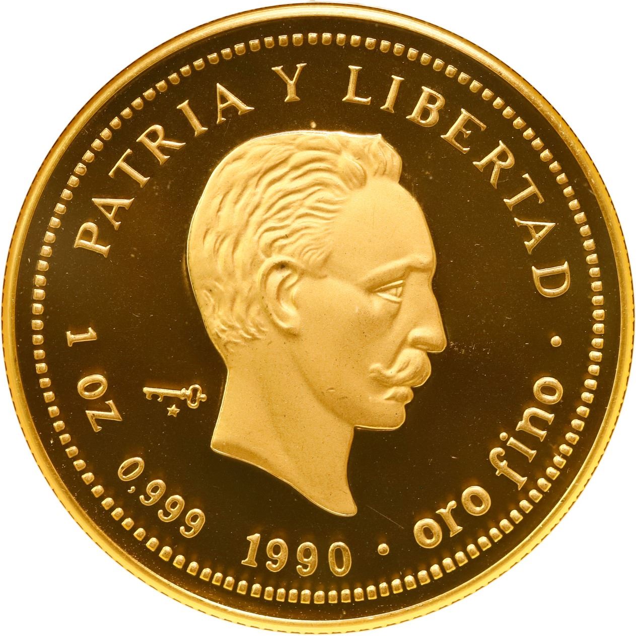 CUBA, Havana mint, gold proof piefort 100 pesos, 1990, José Martí, NGC PF 68 Ultra Cameo (EMO Collec