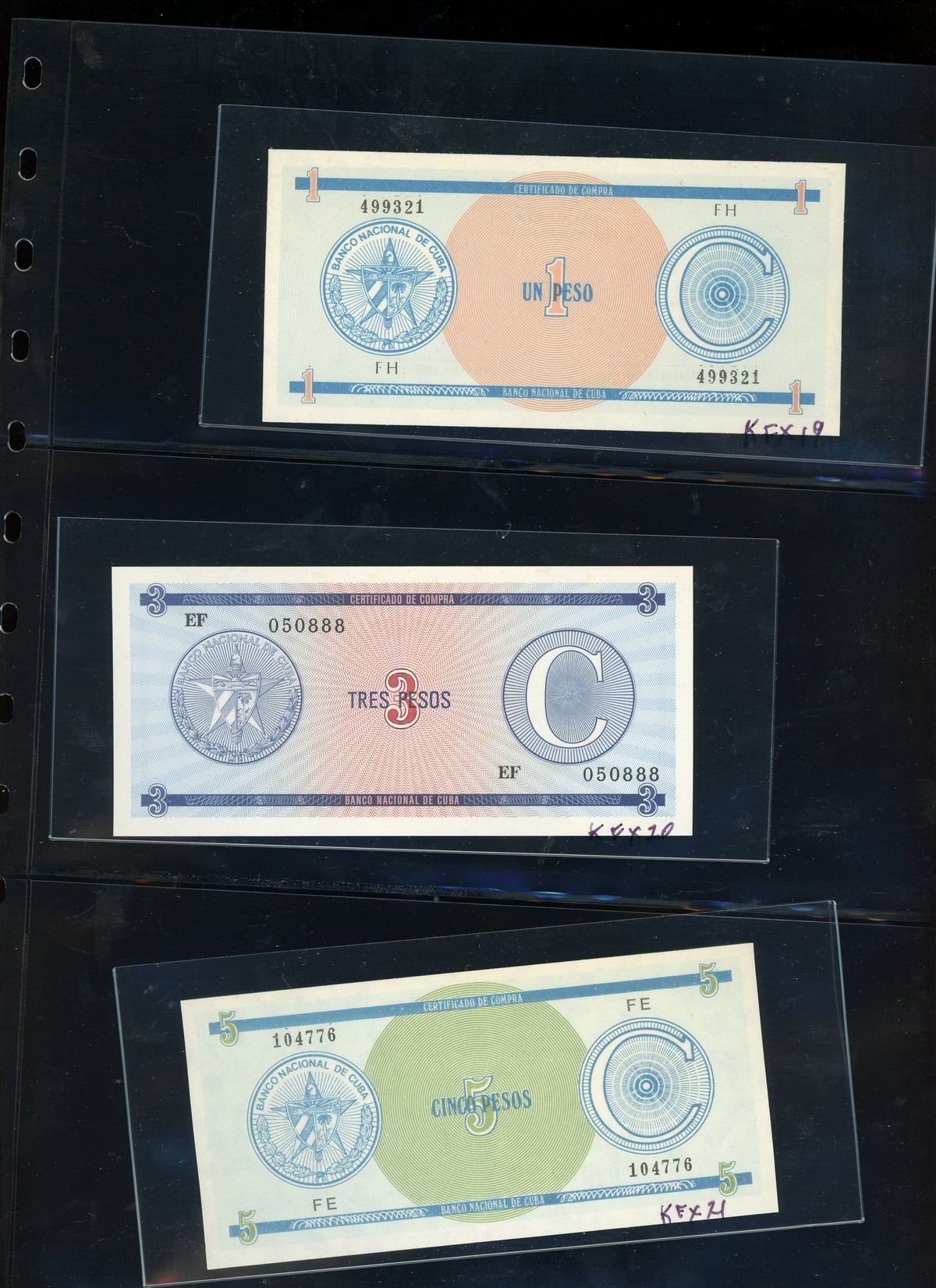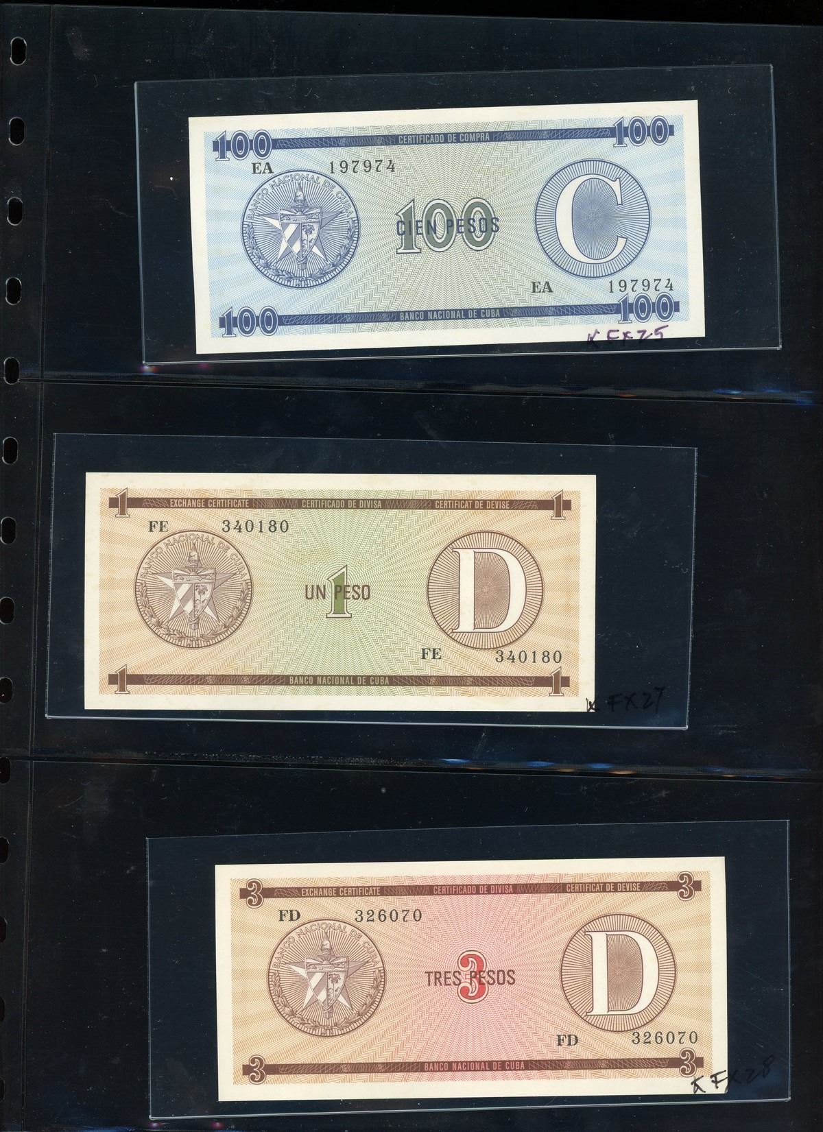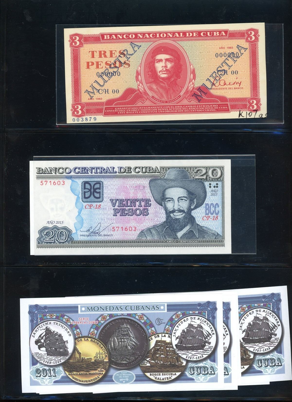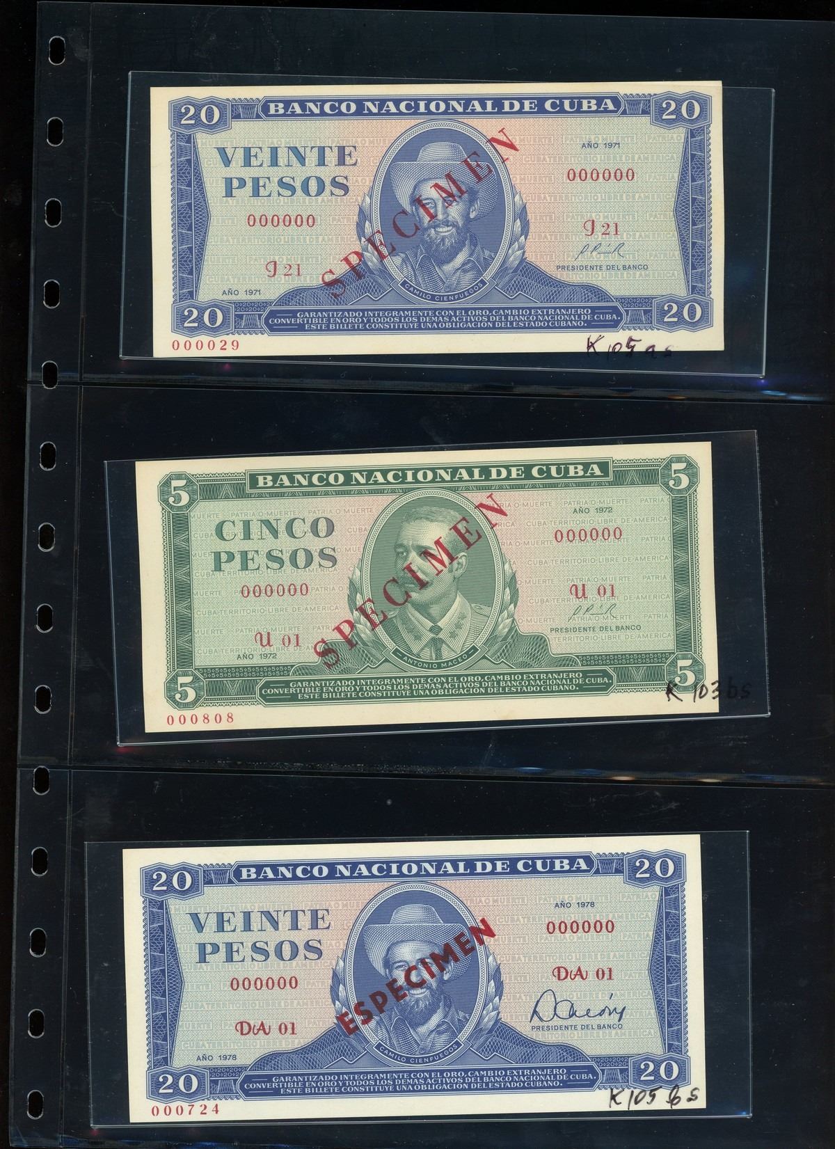 CUBA, binder of Cuban notes, ex-Busto. Total: 56 notes. A companion set to the prior lot, this assemblage is focused mostly on Cuban specimen notes from 1961 to 1983 ordered by type and documented with their Pick numbers. All grading UNC or nearly so, with some exhibiting minor paper toning. Housed in a professional binder and slipcase. Personal inspection highly recommended. Pedigreed to the José Busto Collection.