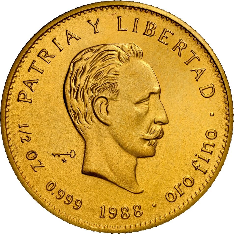 CUBA, gold 50 pesos, 1988, José Martí, NGC MS 68.