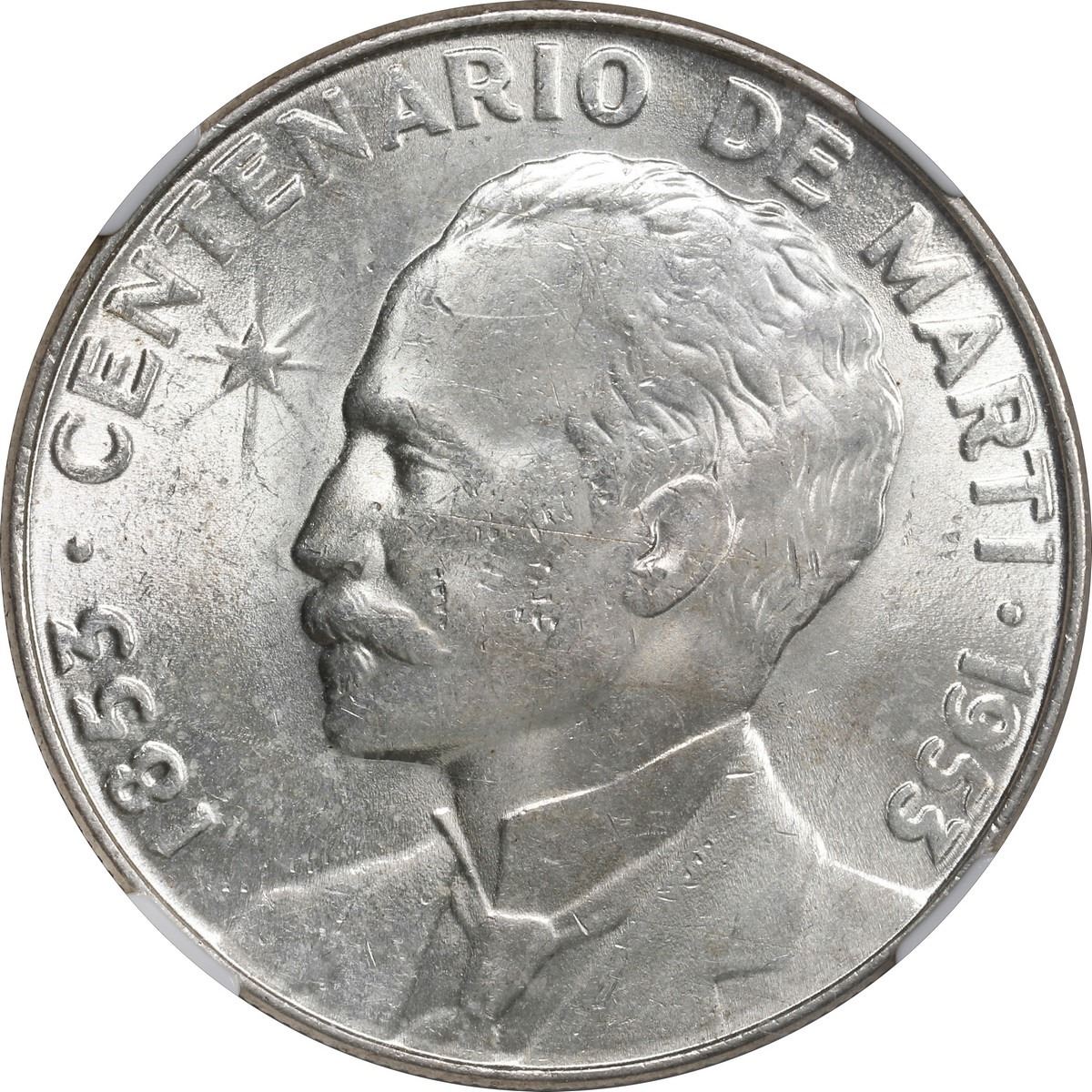 CUBA, struck at the Philadelphia mint, 1 peso, 1953, José Martí centennial, NGC MS 62, ex-Busto.