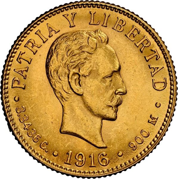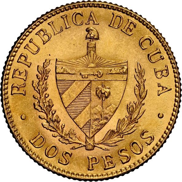 CUBA, struck at the Philadelphia mint, gold 2 pesos, 1916, NGC MS 63.