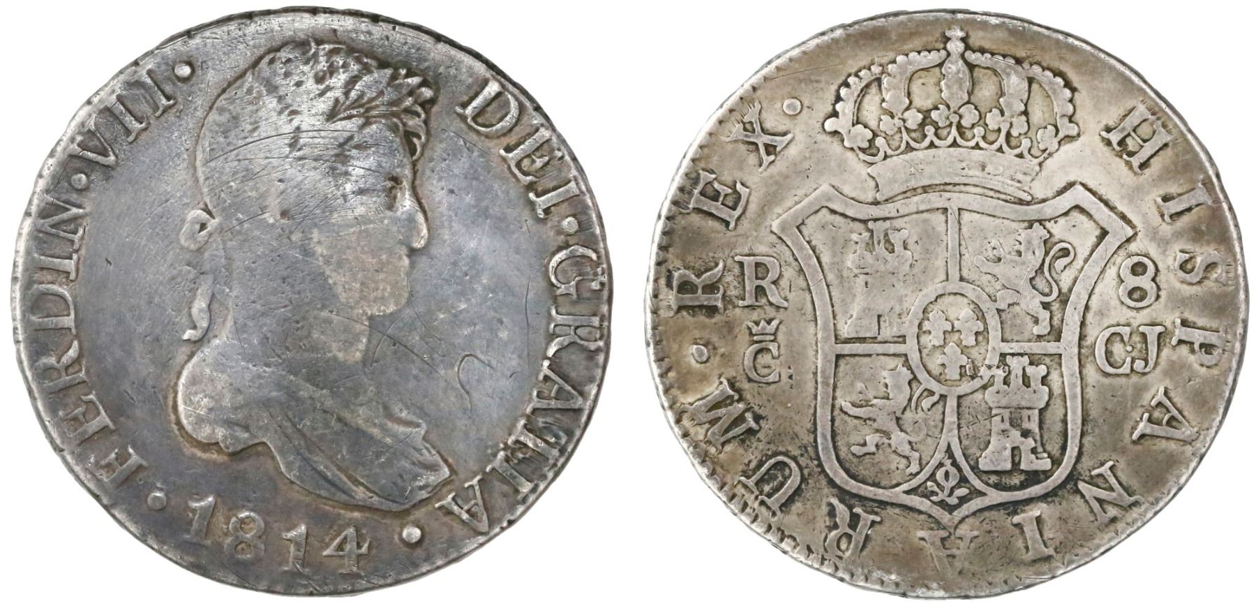 Cadiz, Spain, bust 8 reales, Ferdinand VII, 1814CJ.