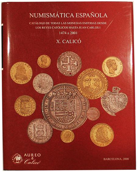 Calico, X. Numismatica espanola (2008). HC, DJ, new, 891 pp. This is effectively the most recent version of the "CT" reference (originally written by F. & X. Calico with Joaquin Trigo), and as such it is the most accurate and complete reference for all Spanish and Spanish colonial coins from Ferdinand-Isabel to present.