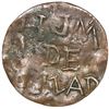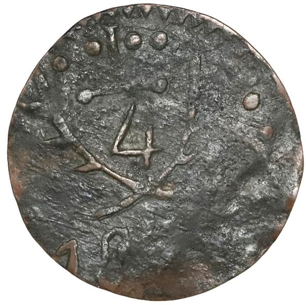 Campeche, Mexico, bronze 1/4 real token, 1875, H.J.M. de Palizada, NGC VF 25 BN, ex-Norweb (stated on label). Rulau-Cam46; Grove-1793. 24.5mm. Obverse with HJM / DE / (P)ALIZAD(A); reverse with 1/4 inside wreath above date 1875. Crude strike, the denomination side off-center and incomplete but the other side clear, some black oxidation (mostly on denomination side), desirable pedigree. Pedigreed to the Norweb collection. NGC #5850336-002.