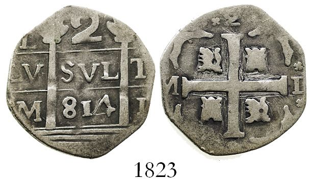 Caracas, Venezuela(?), "imitation cob" 2 reales, date "814" (early 1800s), rare (unlisted date).