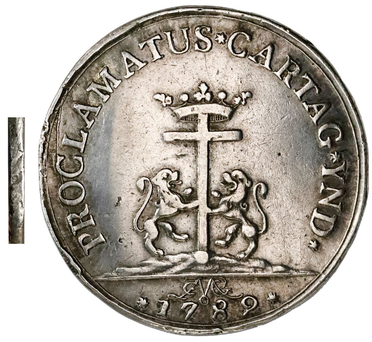Cartagena, Colombia, 4 reales proclamation medal, Charles IV (bust of Charles III), 1789, plain edge