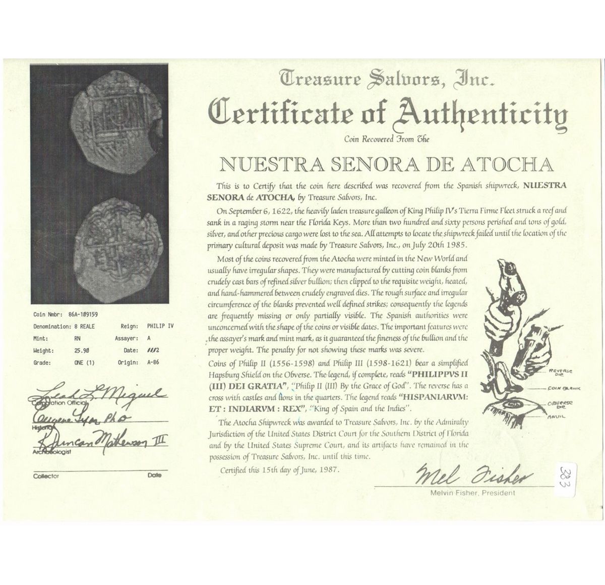All items are genuine unless noted. Most shipwreck coins and artifacts come with a certificate of authenticity (please check the description for each item). By bidding in this auction you understand and agree to the Terms and Conditions posted here.