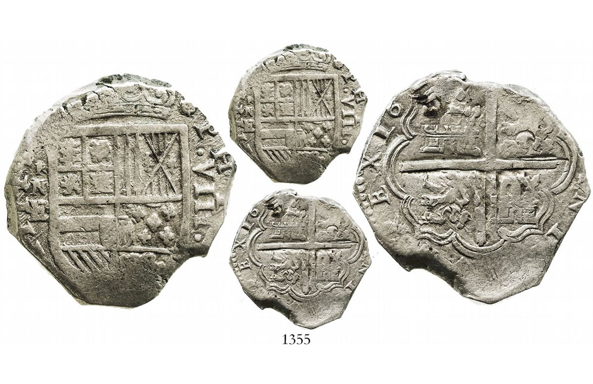 Cartagena, Colombia, cob 8 reales, 162(6-9)E, with RN-E to left, rare. S-C3; KM-3.4. 27.3 grams. Low-contrast VF+ with well-detailed full shield and cross (the latter slightly doubled and off-center), bold RNE and denomination, bold 16 of date.