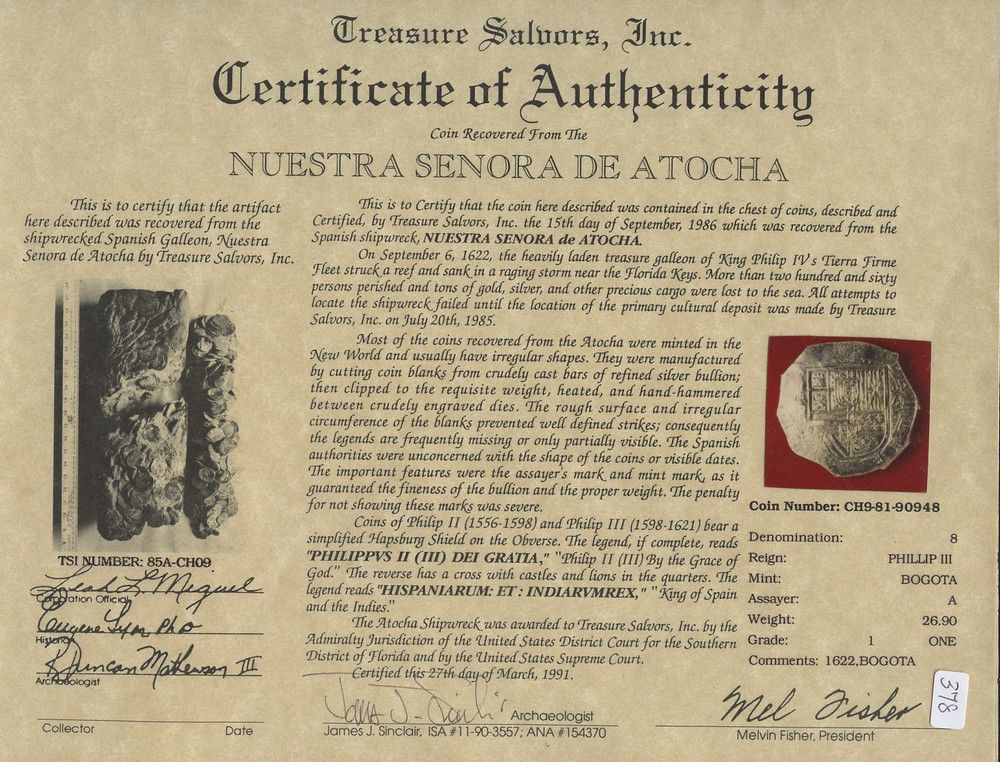 All items are genuine unless noted. Most shipwreck coins and artifacts come with a certificate of authenticity (please check the description for each item). By bidding in this auction you understand and agree to the Terms and Conditions posted here.