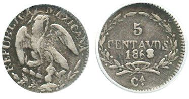 Chihuahua, Mexico, 5 centavos, 1868, encapsulated ANACS VF 25.