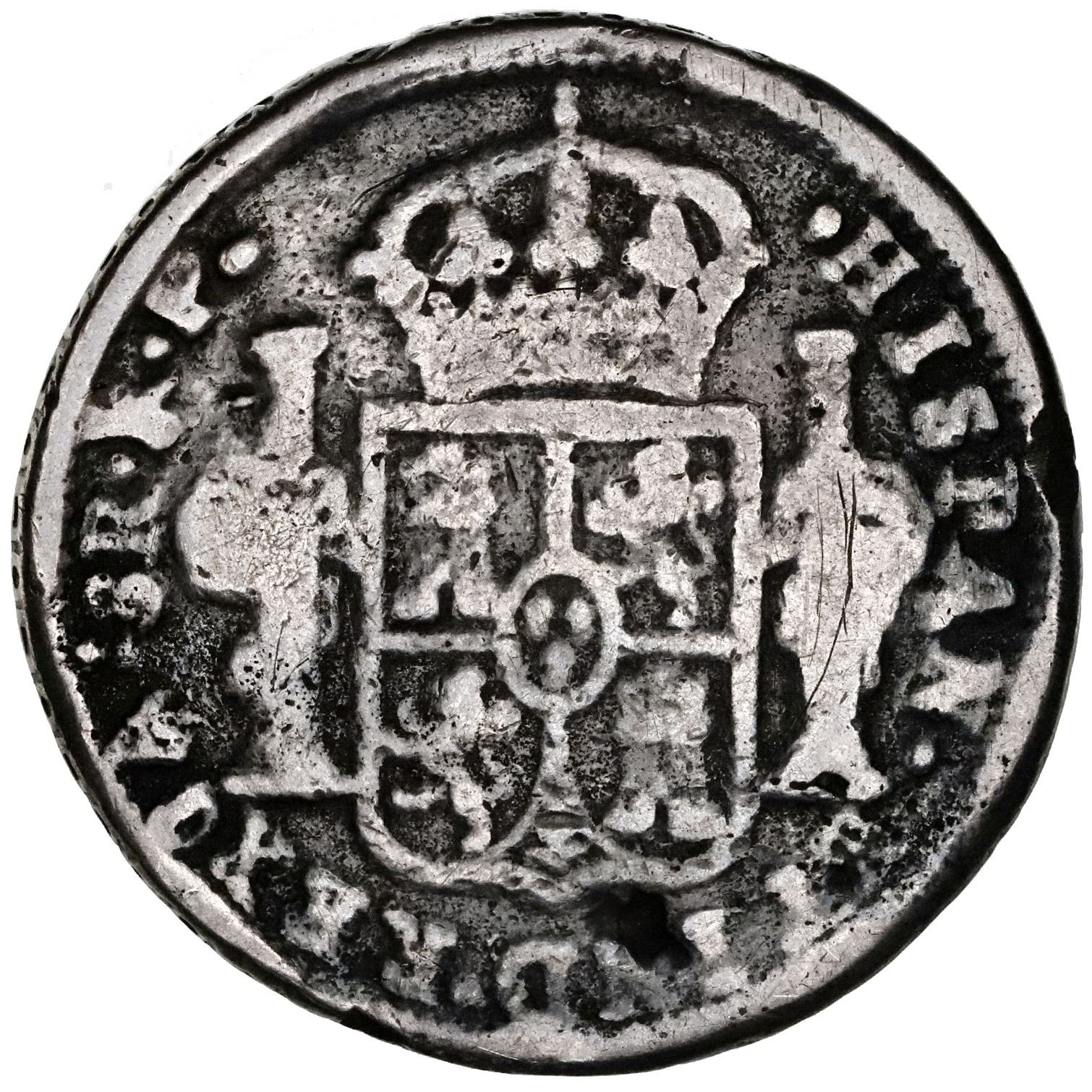 Chihuahua, Mexico, cast silver bust 8 reales, Ferdinand VII, 1812RP, with official countermarks flanking bust, NGC VF details / graffiti. Cal-1164; KM-123. Typically crude VF with scratches around bust, deeply toned. NGC #5938099-004.