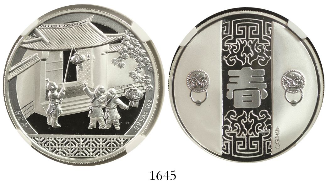 China, 1-oz silver medal, Celebration of Spring, (2009), encapsulated NGC PF 69 Ultra Cameo. Blindingly bright and flawless.